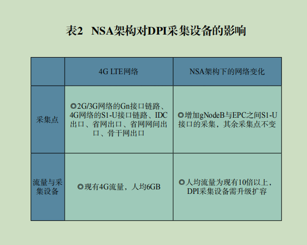 在NSA架构下,安全管控系统只有接入网的架构、信令、用户面数据流发生变化,核心网架构、信令、数据流未发生变化;5G业务所有的信令数据、业务数据可被现有系统采集,可以实现管控。