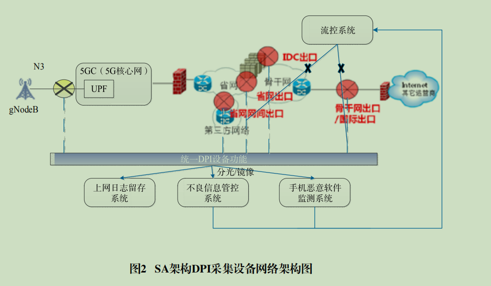 在5G SA网络架构下,DPI采集设备的架构参见图2。在该架构图中,DPI采集点会发生变化。